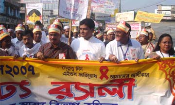 District Information Office of Cox’s Bazar had been organized Rally, Discussion and Cultural program on AIDS day at Cox’s Bazar from 1 to 3 December 07 and programs are supported by District Administration and UNFPA. Discussion meeting was presided by Mr. Sajjadul Hasan, DC, Cox’sBazar and Chief Guest was Mr. Abdul Mannan, Director General, Department Of Mass Communication of Bangladesh Gov. Special guest were Mr. Banaj Kumar Majumder, Police Super Cox’s Bazar, Dr. Mesbah Uddin Ahmed, Residential medical officer, District Hospital.