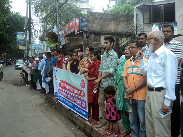 Smoke Free Coalition and Smoke free Generation formed a human chain demanding implementation of tobacco control law and passing the rules under its law. The program was held in front of Chittagong Press Club with the support of YPSA and CTFK on October 2, 2014.