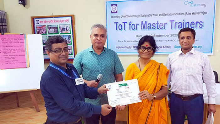 Prof Dr. Bhaswati Mitra, Controller of Examinations, Techno India University, West Bengal, India. (Former Controller of Examinations. Bengal Engineering and Science University & Deputy Controller of Examinations, Jadavpur University.) and Mr. Dipak Kumar Mitra, visited YPSA activities of the “Ensuring a sustainable livelihood for People with Disabilities through Inclusive Development Program” under Inclusive Finance Program, Alive WASH project, Economic Development program, Elderly people program and ENRICH education program on September 19, 20 and 21, 2023. Md. Arifur Rahman, Founder Chief Executive was present with them during the three-day visit.