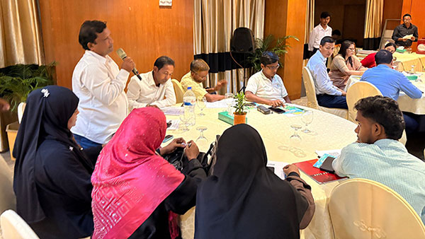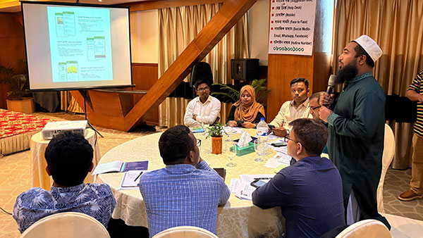 The training was conducted by Khairul Antor, Product Designer, RIMES, who facilitated sessions on the purpose and expected outcomes of the BAMIS app, key features and usage, hands-on practice, installation process, weather-based agricultural advisory interpretation, and decision-making for risk reduction and resource management in farming.