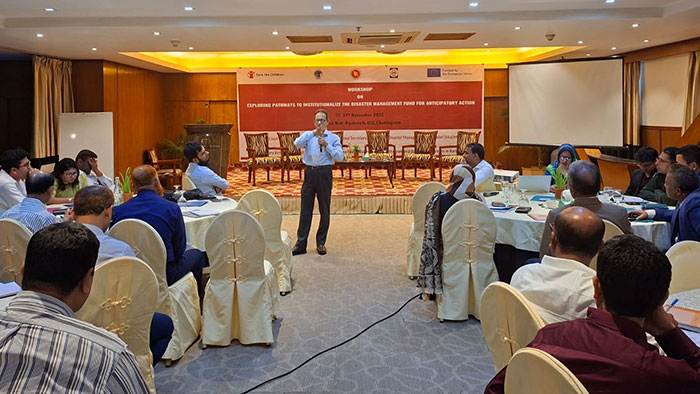 A pivotal workshop, “Exploring pathways to institutionalize the Disaster Management Fund (DMF) for Anticipatory Action (AA),” was successfully organized on Monday, November 17, 2025, at the Peninsula, Chattogram. The event was jointly hosted by YPSA, Save the Children, and RIMES, with support from the European Civil Protection and Humanitarian Aid Operations (ECHO). This high-level gathering focused on transforming the DMF from a reactive relief mechanism into a strategic financial tool capable of funding proactive measures before disasters strike, specifically targeting severe landslide and flash flood risks in the vulnerable Chattogram region.