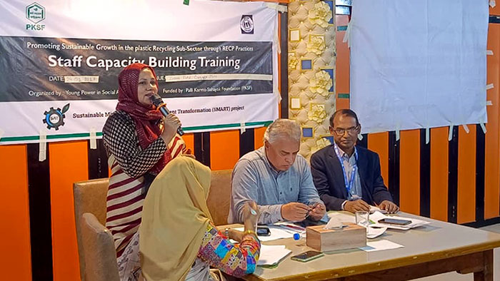 Delowar Hossain, Project Manager (YPSA-SMART Plastic Recycling project), conducted sessions on plastic recycling processes, types of plastics, microenterprise development, and loan and grant management under the YPSA-SMART Project.