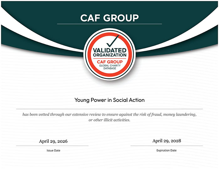 Young Power in Social Action (YPSA) is pleased to announce that it has received official certification from CAF America as a CAF International Validated Organization.