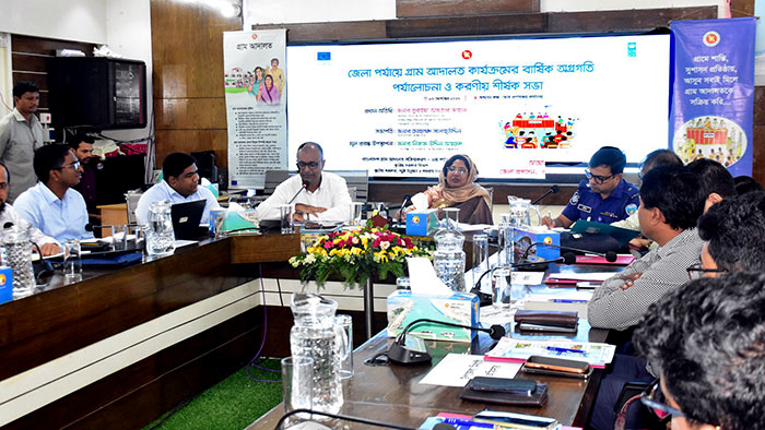 জেলা প্রশাসক কার্যালয়ের স্থানীয় সরকার শাখার সহকারী কমিশনার মো. রিফাত হোসেনের সঞ্চালনায় জেলার জুলাই ২০২৪- জুন ২০২৫ গ্রাম আদালতের কার্যক্রমের অগ্রগতি, চ্যালেঞ্জসমূহ এবং শিক্ষণীয় দিকসমূহ পর্যালোচনা এবং করণীয় বিষয়ে দিক-নির্দেশনামূলক মূল প্রবন্ধ উপস্থাপনা করেন স্থানীয় সরকারের উপ পরিচালক (ভারপ্রাপ্ত) নিজাম উদ্দিন আহমেদ।